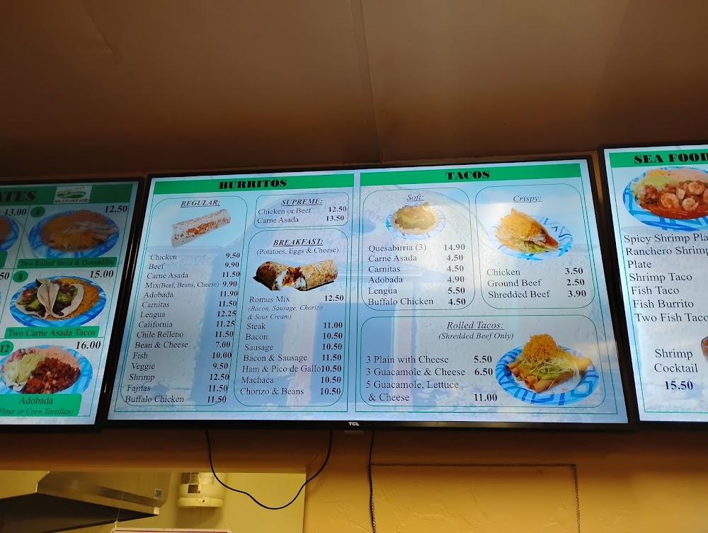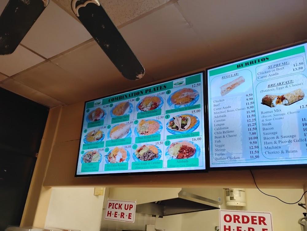 Romulitos features a diverse menu showcasing traditional Mexican cuisine. Breakfast options include chilaquiles and various breakfast burritos. For lunch and dinner, enjoy classic favorites like tacos, enchiladas, and burrito combos.